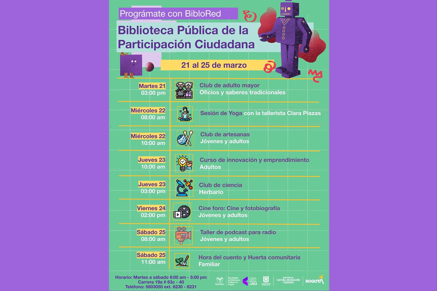 Programación Cultural Biblioteca de la Participación del 21-27 de Marzo 2023